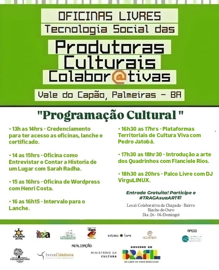 VALE DO CAPÃO Este espaço é para quem conhece, cuida e quer ajudar a fazer o Vale do Capão um lugar melhor para conhecer, viver e visitar. História Local Portal de Notícias do Vale do Capão Noticias Oficinas Livres Oficinas livres Evento Colaborativa Oficinas Livres: Tecnologia Social das Produtoras Culturais Colaborativas Eventos O evento foi um verdadeiro sucesso! ✨ Tivemos um dia inteiro marcado por trocas riquíssimas de conhecimento, conexões e muita inspiração. […] Ver Todos os Posts Álbum do Vale do Capão Galeria de Fotos Vale do Capão Riachinho Purificação Poço de Olavo Fumaça por Baixo Águas Claras Vila Cachoeira da Fumaça Ver Álbum Completo a definir Bairros a definir Moradores a definir Pontos Culturais
